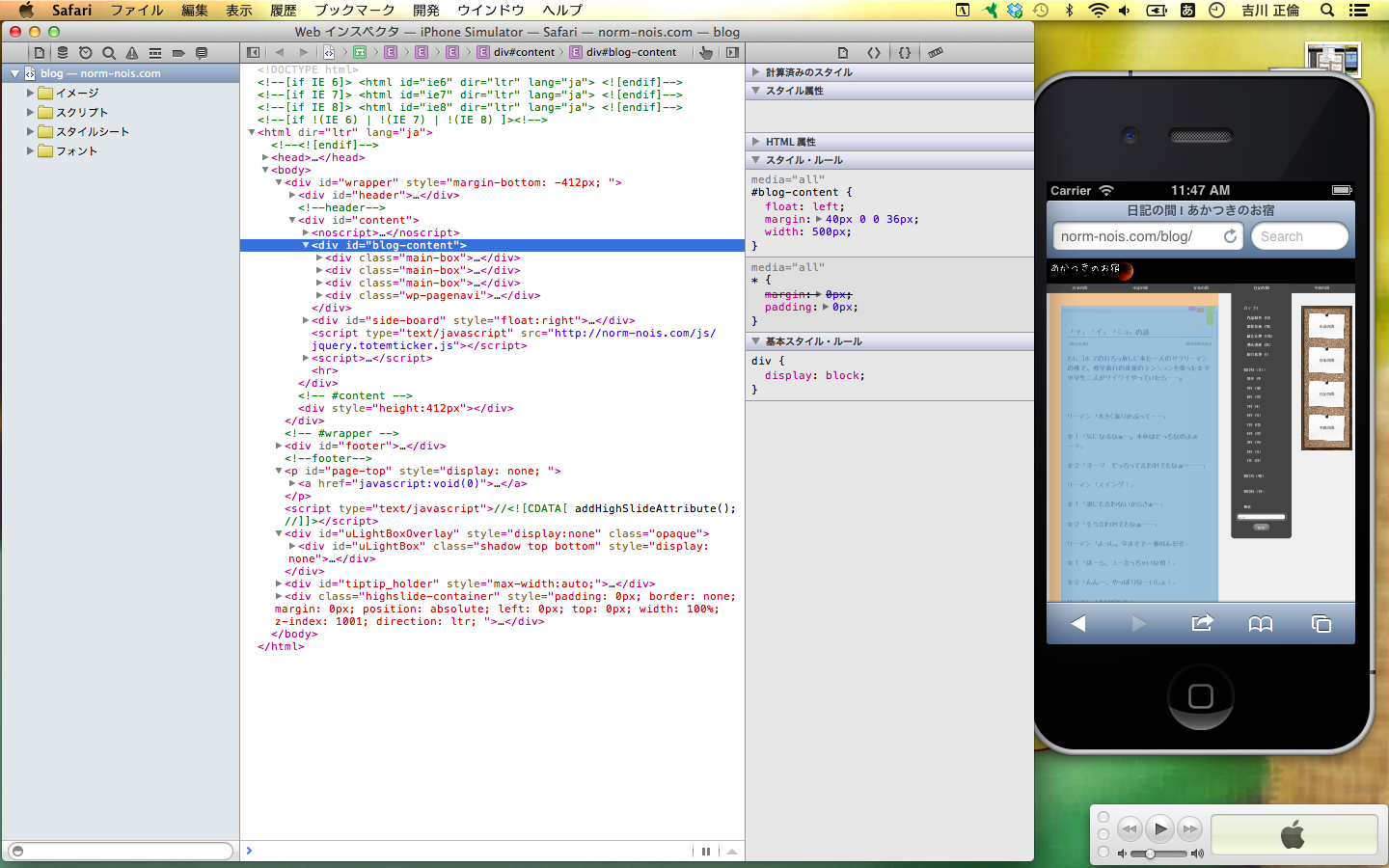 これで、普段Safariでインスペクタを見ているときと同じように要素の検証ができるってーすんぽーです。