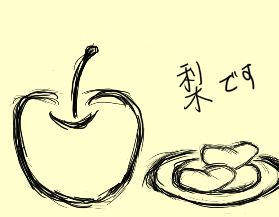 一応、梨です。見ようによってはりんごに見えなくもないですが、梨です。見ようによっては食べ物に見えないかもしれませんが、梨です。
