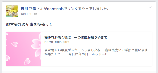 これは先日僕が実際にここのブログと連携してFacebookに投稿したコメントなんですけど、この画像と照らし合わせると、上のコードのパラメータはこんな感じになります。