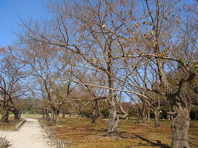別に紅葉じゃなくても、後楽園では一年中いろんな花が咲いてるみたいなのですが、案内を見たところ、唯一、今の時期だけが何も咲くものがなかった。10月の中頃だけ咲く花がないみたい。