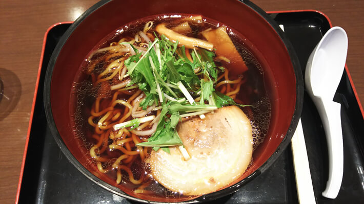 有磯ブラックラーメンです。富山のラーメンといえばブラックラーメンですね。富山ブラックラーメンというのもメニューにはあったんですが、有磯海SAってことで、有磯ブラックラーメンの方をチョイスしました。富山ブラックラーメンと値段が200円違ったんですが、実際何が違うのかは、食べ比べてないので分かりません。