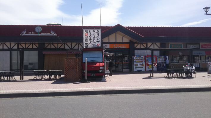 この写真を見ると、右の方にフードコートが見えますね。この時点ではまだ開いてたんですが、写真を撮るために駐車場をうろうろしている間に、シャッターを閉められてしまいました。ちょうど閉店のタイミングだったんだな。焼き鳥でも買おうかなぁなんてちょっと考えてたのですが、残念。