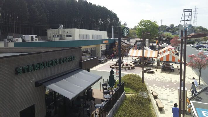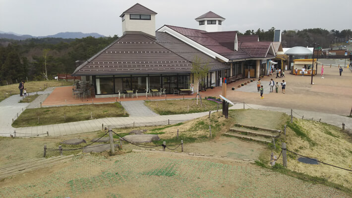 この右の方に見えるのが、ハイウェイオアシス。SAから徒歩で行けます。というか、ハイウェイオアシスと合わせてここ全体が城端SAなのかな。