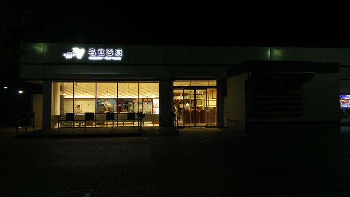 ホタルイカの沖漬けと米が合うという意外な発見を得たところで、次は有磯海SA。だんだん暗くなってまいりました。