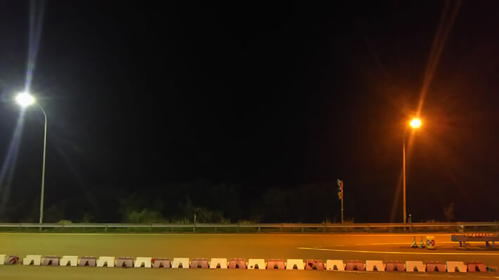 一応撮ってみたけど、何も見えやしねー。でもこの暗い部分には海が広がっている……はず。