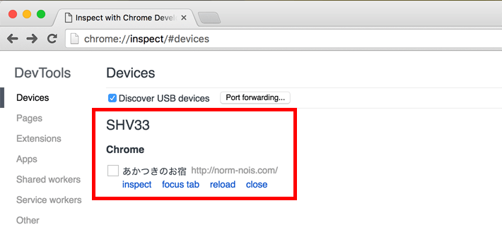 Chromeを開いて、以下のアドレスを入力してください。chrome://inspect/#devices