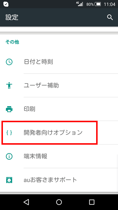 Androidの設定画面を開くと「開発者向けオプション」というメニューがあります。