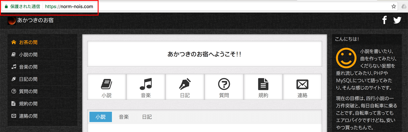 今回は記事を書くために一時的にSSLを有効にしただけなので、実際のあかつきのお宿はhttpでしかアクセスできない状態です。