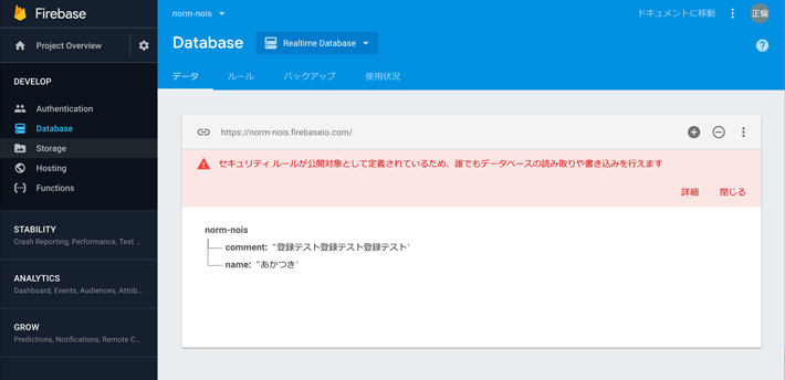 database.rules.jsonの内容に従うみたいなことですね、きっと。