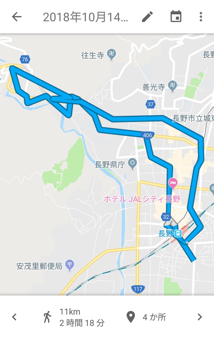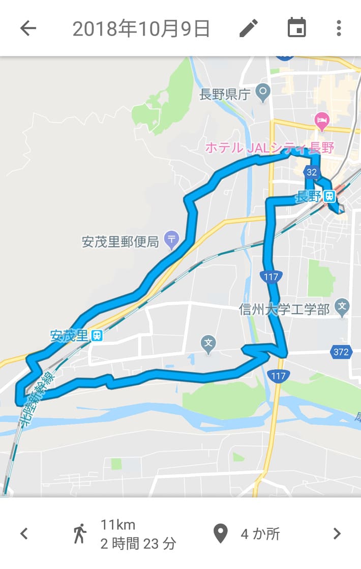 個人的にはGoogleマップと連動して自分がどのルートを歩いたか記録を残せるアプリでもあれば「あ、このルートはまだ行ってないな」ってのがわかって面白いのになぁなんて思ってたんですが、何のことはない。アプリどころかGoogleマップ自身にその機能がありましたわ。