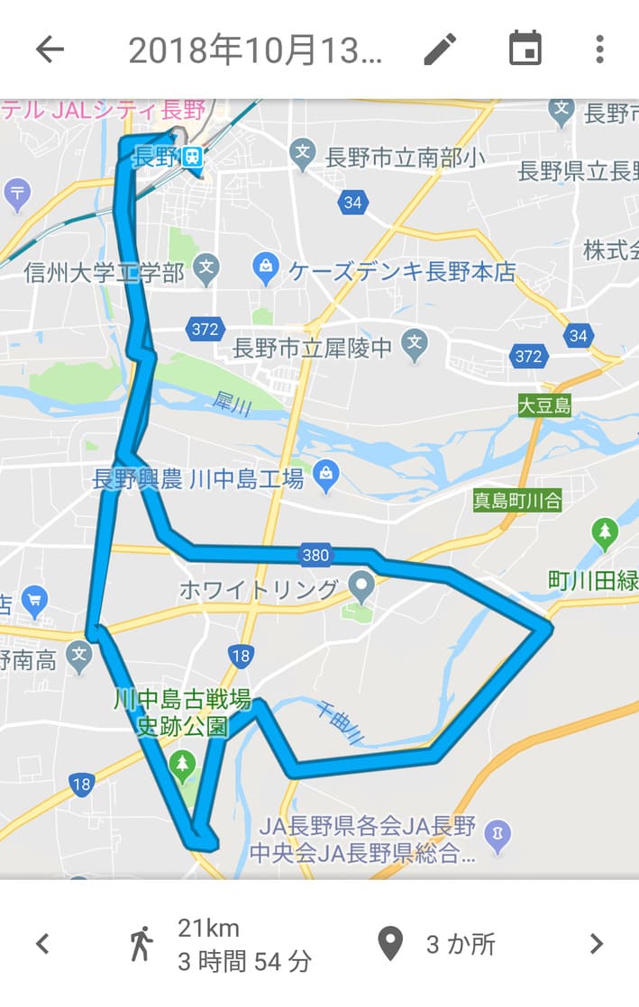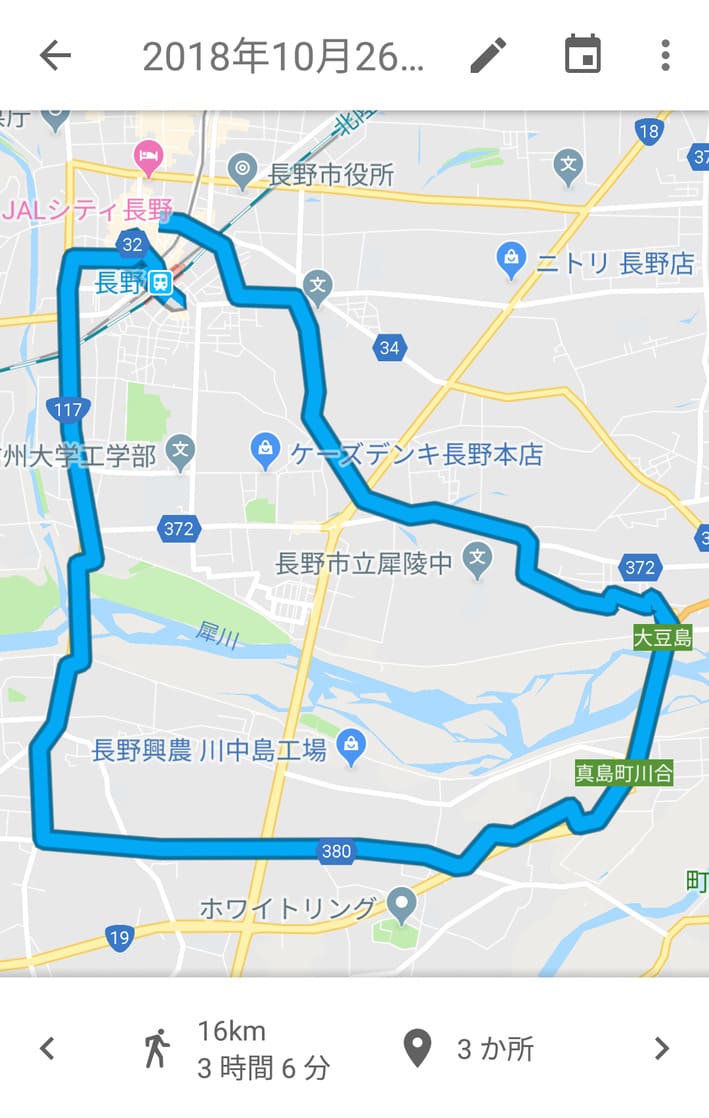 そのためには日頃から歩いて体力をつけなきゃということで、最近は仕事が終わってから夜な夜な長野市内をうろついているんですけど、ただ歩くだけだとやっぱり飽きがきちゃいますね。毎回ルートを変えてなるべく飽きないようにしているとはいえ、どこをどんな風に歩いたかなんて細かく記録つけてるわけでもないですし。
