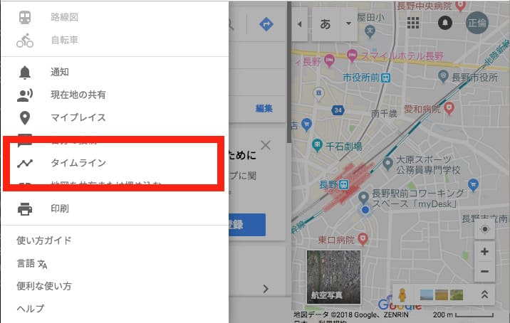 バージョンとかによって多少は違うかもしれませんが、ロケーション履歴はメニューの「タイムライン」から見れます。