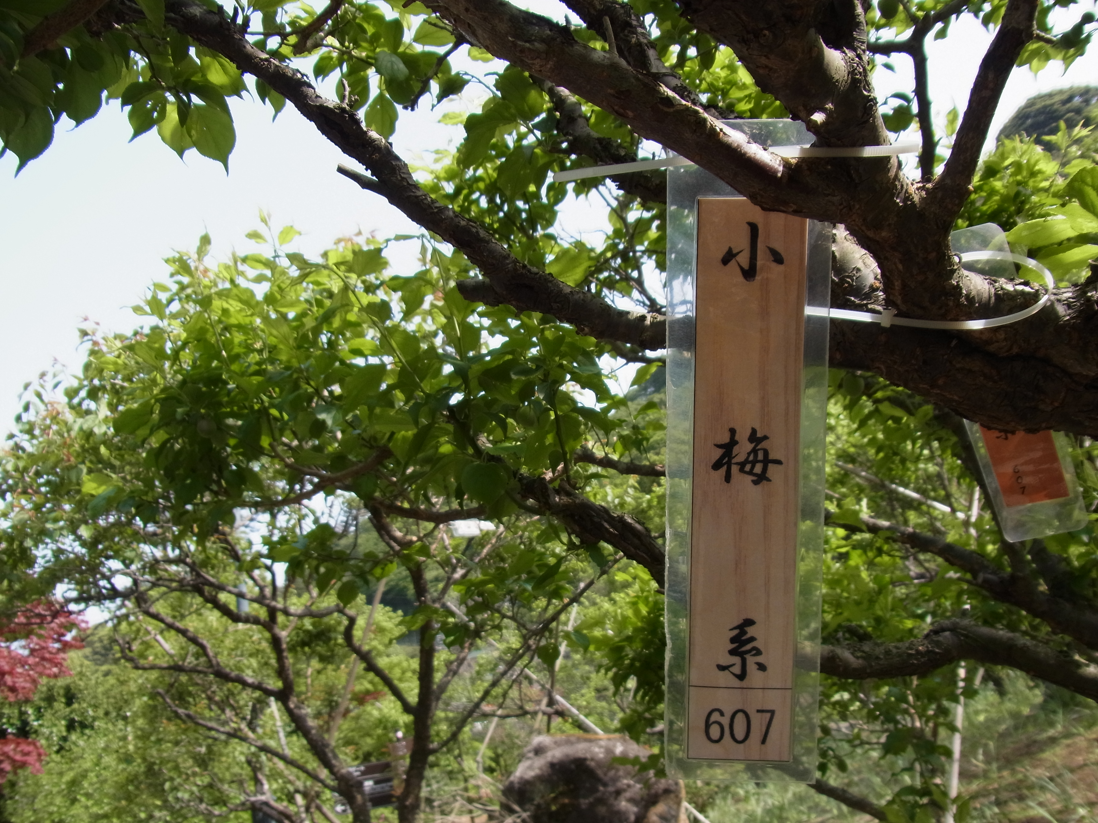 そんな僕みたいな植物博士素人童貞野郎にも分かるように、枝にはいたるところにその梅の種類名が記載されていました。