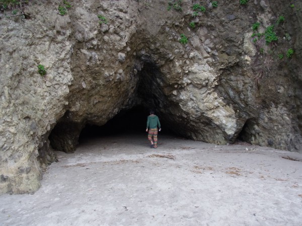 洞窟があったので入りました。写真に写っているのは僕ではなく下田駅で待ち構えていた友人のGです。