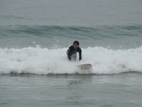 こっちが同じく下田で待ち構えていた友人のT。波の質が良くなかったのか、いまいち乗り切れてなかったようです。