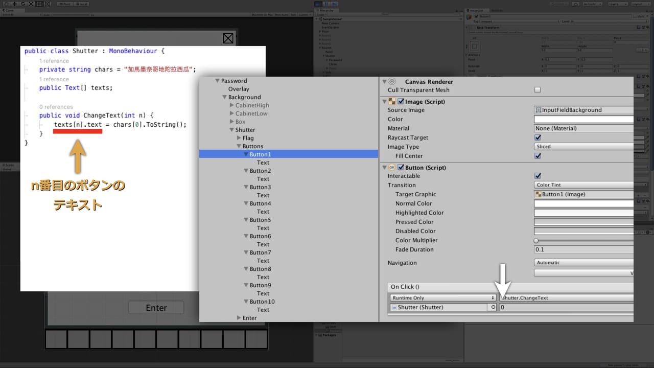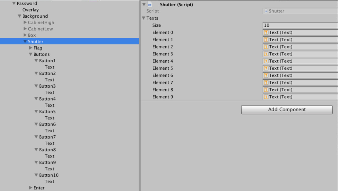 この変数の中に10個のボタンのテキストコンポーネントを入れておきます。