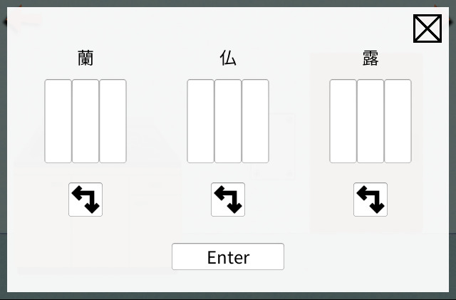 本作にはないんですが、画像をくるくる回して角度をそろえるようなパスワードも脱出ゲームでは結構見かける気がします。例えばこんなの。