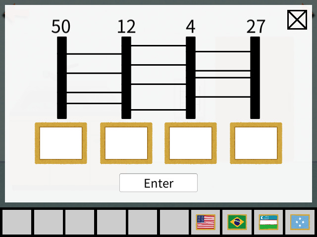 本作ではあみだくじに4枚の国旗パネルをセットするというパスワードを実装しています。