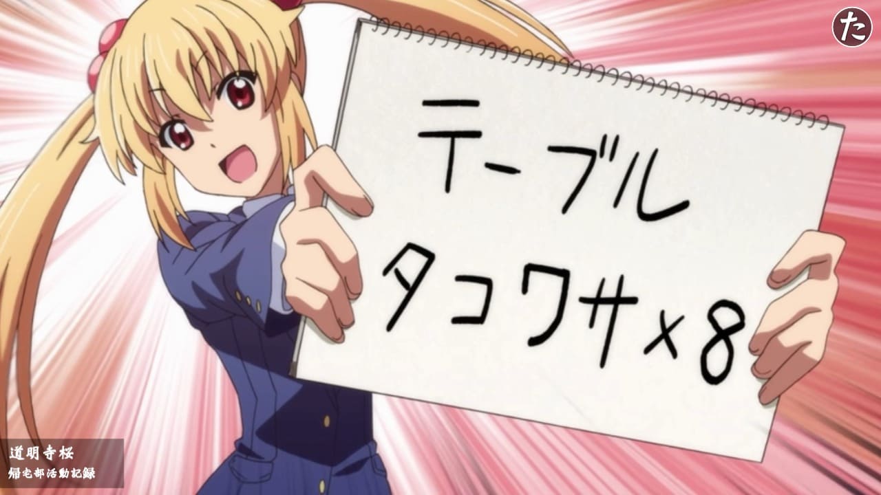 ニコニコ動画では声優さんたちの演技(主に玄武)に対して一家言あるようなないようなコメントが見受けられた帰宅部活動記録ですが、個人的には伏線の回収のしかたとかが面白くてわりと好きな作品です。しりとりの回とか特に好きです。このアニメのおかげでアザラシについて少し詳しくなり、後に東大王というクイズ番組を見ていた時にその知識が役に立ったのも今となっては良い思い出です。